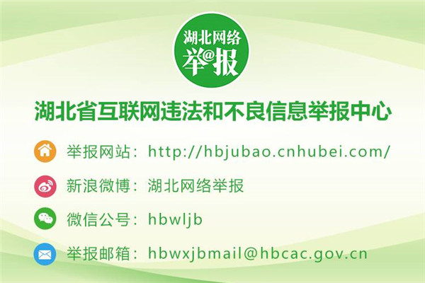 2022年6月,湖北省互联网违法和不良信息举报平台官网升级改版,同步公布了湖北网络举报微博、微信公众号、举报邮箱、举报电话,形成“四位一体”的网络举报工作体系。