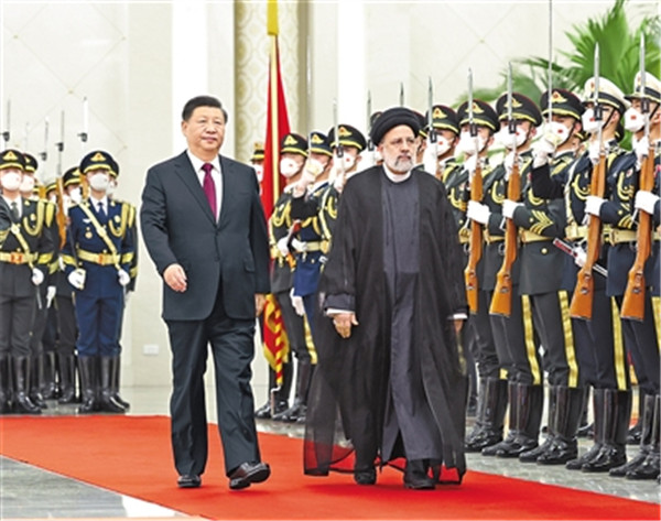 习近平指出,中伊两国传统友好,两国关系经受住各种国际风云变幻考验。面对当前世界之变、时代之变、历史之变的复杂局面,中伊相互支持,团结协作,携手抗击新冠疫情,战略互信不断巩固,务实合作稳步推进,促进了共同利益,维护了国际公平正义,谱写了中伊友谊新篇章。中国正在以中国式现代化全面推进中华民族伟大复兴,坚定不移推动高质量发展和高水平开放,坚定不移维护世界和平、促进共同发展。中方始终从战略高度看待和发展中伊关系,无论国际和地区形势如何变化,中方都将毫不动摇发展同伊朗的友好合作,推动中伊全面战略伙伴关系不断得到新发展,在百年未有之大变局中为世界和平和人类进步发挥积极作用。