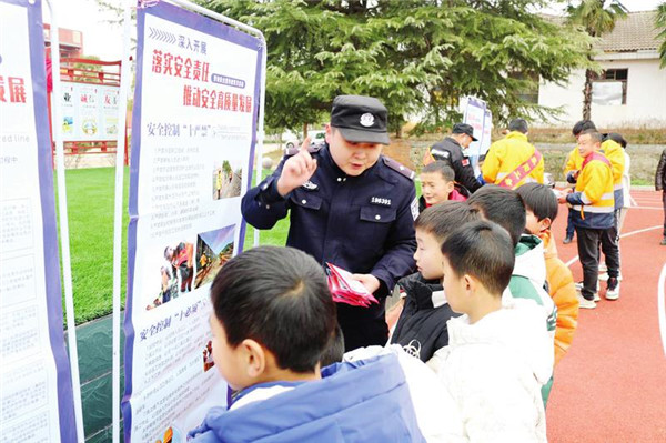 襄阳铁路公安处随州南车站派出所民警日前到曾都区何店镇浪河小学,开展“知路爱路护路、共筑平安铁路”安全宣传活动。 (随州日报全媒记者王聪莹、通讯员王辉摄)