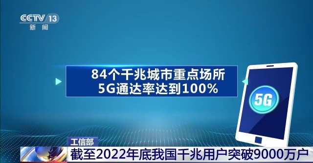 目前,我国千兆光网具备覆盖超过5亿户家庭的能力,5G基站数量达231.2万个。千兆城市平均城市家庭千兆光纤网络覆盖率超过100%,平均每万人拥有5G基站数达到22.2个,平均5G用户占比达到38.9%,均高于全国平均水平。其中,84个千兆城市重点场所5G通达率达到100%。截至2022年底,我国千兆用户突破9000万户,5G用户突破5.61亿户。