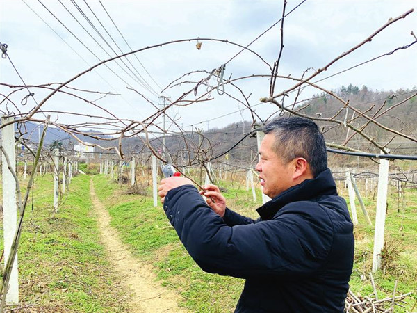 现场看到,干部群众有的在给果树绑藤,有的在清理果园,大家边劳动边谈论如何搞好科学管理,一派火热景象。“在村里的猕猴桃基地务工,一方面能帮忙照顾家里,每年还可以增收15000元左右,真的很不错。”正在给猕猴桃修枝的村民孙宗义高兴地说道。