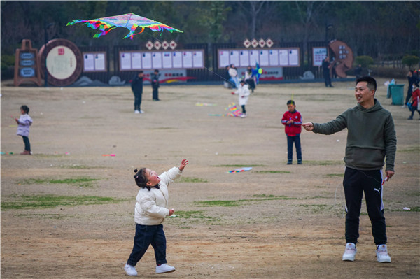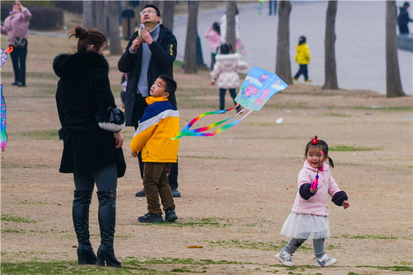 2月25日,随州文化公园笑声朗朗,人们在这里赏美景,放风筝,尽情享受春日阳光。(全媒记者 孙洪涛摄)