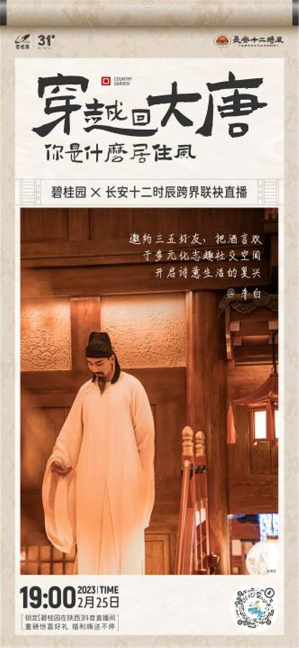 一日长安,邂逅唐朝。碧桂园居住复兴的第一站选择在了千年历史古都西安,跨界牵手陕文投,在沉浸式唐风市井文化生活体验街区——长安十二时辰主题街区,于2月25日「碧桂园在陕西」抖音直播间,展开了一场跨越古今的文化约会直播!