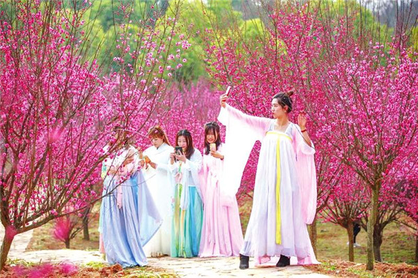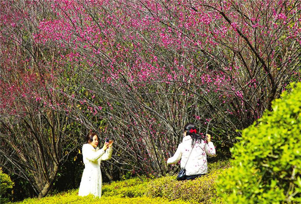 在炎帝故里景区梅园,梅花绽放花枝俏,花朵层层叠叠、严严密密。游客络绎不绝,赏花、踏春、拍照打卡,随手一拍,均是一幅画。
