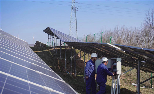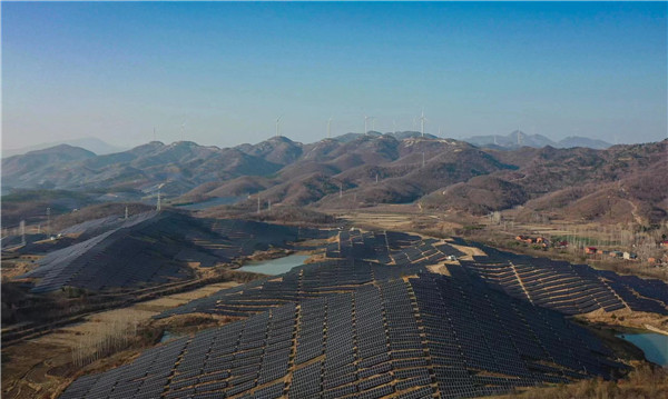 图为万和镇光伏电站和风力电站(随州日报全媒记者 李文军摄)