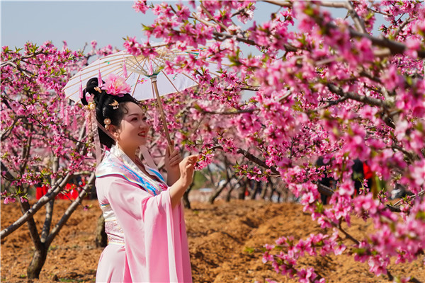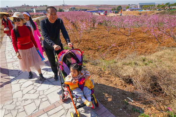 3月14日,随县尚市镇桃花园里的桃花迎来盛花期,景区里笑声朗朗,桃花间游人如织,人们携家带口,尽情享受春日阳光。(全媒记者 孙洪涛摄)
