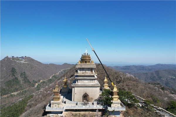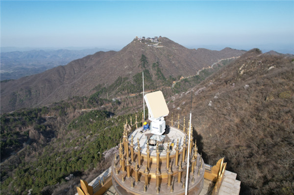 3月14日,X波段双偏振相控阵天气雷达在大洪山风景区“状元台”吊装完成