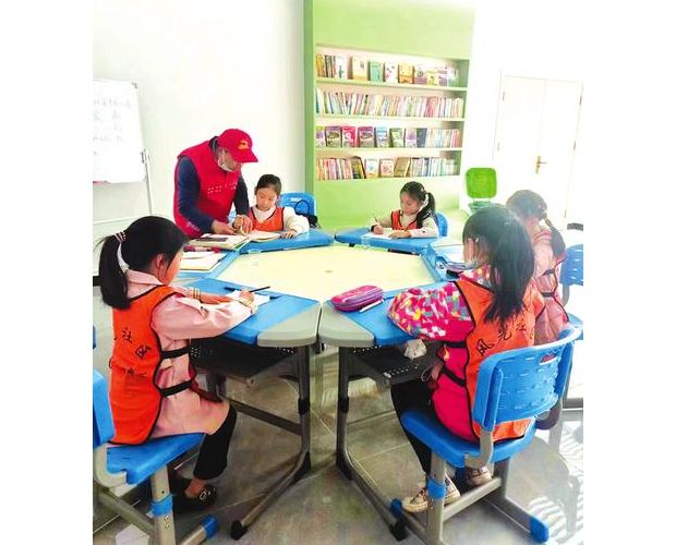 活动中心里,各式各样的儿童读物整齐摆放在书架上,墙上挂满了孩子们的手工、书法、绘画作品,孩子们在这里下跳棋、看绘本,到处洋溢着欢乐的笑声。在一旁教室里,老师正耐心地检查孩子的作业。“爸爸妈妈都去北京工作了,在这里有老师和同学的陪伴,让我感到很温暖。”7岁的雷艺苏小朋友说。