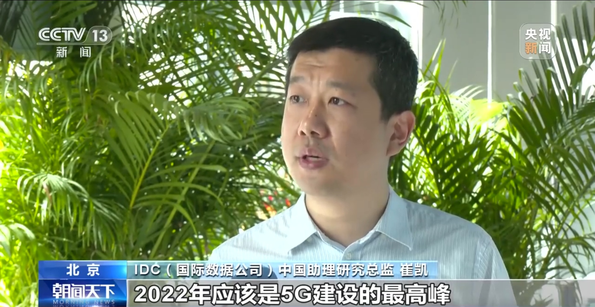 IDC(国际数据公司)中国助理研究总监 崔凯:2022年应该是5G建设的最高峰,中国的三大运营商5G的投资达到了1600亿,新建的基站的数量增长了30%以上,整个全年达到了85.4万个基站,这也是创了过去5G商用三年以来的新高。