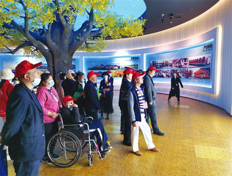 近日,曾都区残联联合随州大爱公益社会工作服务中心组织辖区内残障人士,开展残疾人文化进家庭“五个一”活动之户外行,鼓励残友走出家门,亲近自然,放松身心,丰富精神文化生活,共享社会发展成果。图为在随州市规划展览馆参观。(随州日报全媒记者 林超摄)