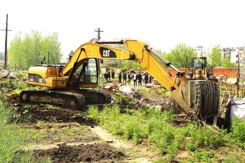 4月10日,市创城办组织市城管执法委、市国投公司和曾都区东城街道等单位,出动100余名执法管理人员,动用铲车和挖机等大型机械设备,对城区老火车站机务段区域约65亩菜地进行集中清理。 (随州日报通讯员 聂少峰摄)