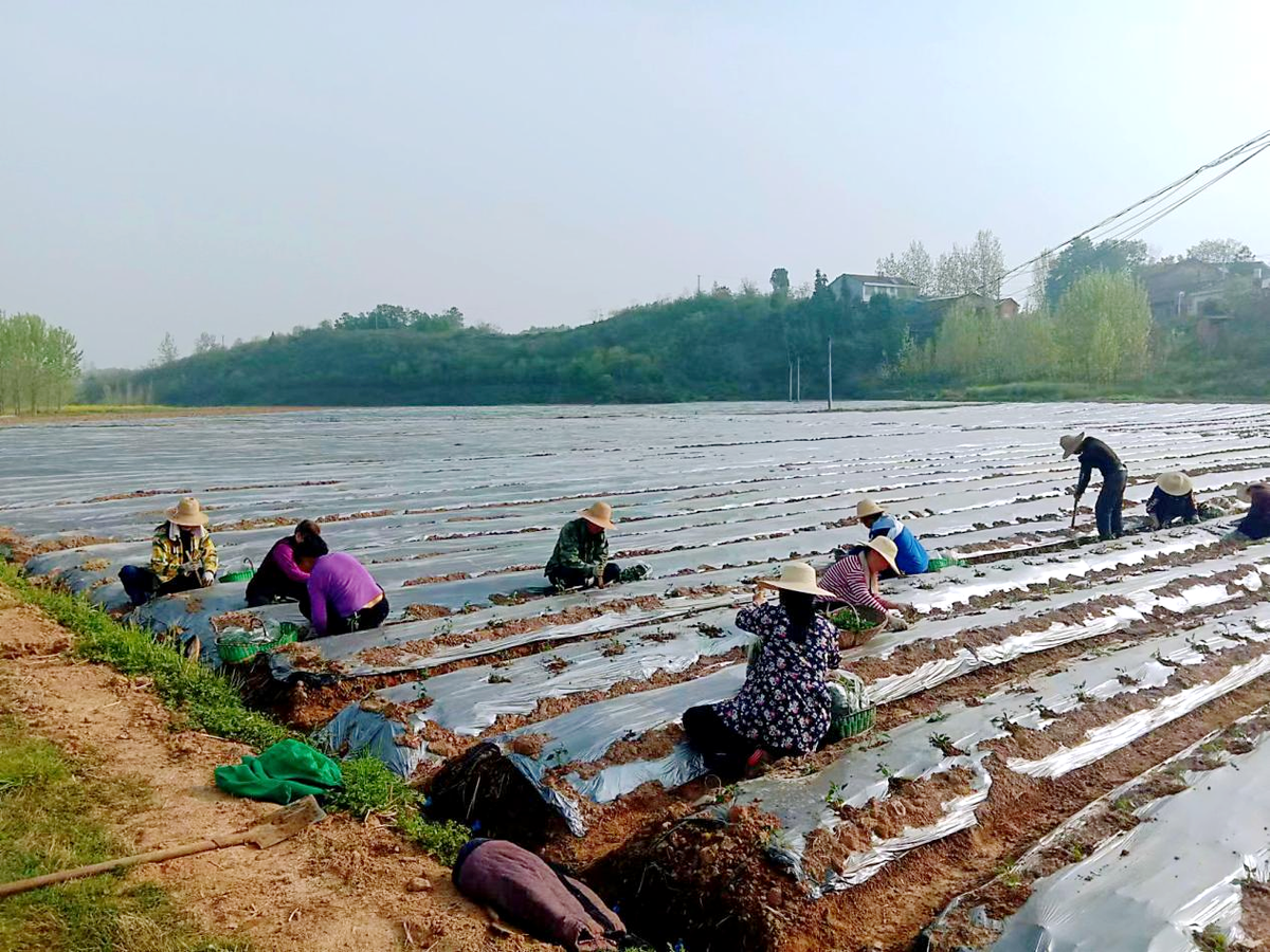 该村党支部书记董登国介绍,潜家楼村地理位置偏僻,生产模式单一,村集体经济相对薄弱。2022年底,潜家楼乡村合作公司与随州市品源现代农业有限公司达成协议,走“合作公司+企业”融合发展的路子,由企业确定品种,统一育苗、供苗,提供技术支持,乡村合作公司负责流转土地和田间管理,辣椒收获后企业以不低于保底价全盘收购。“6万株辣椒苗,三天全部栽植入地。预计总产量15万斤,按保底3元每斤计算,毛收入45万元,每年可为村集体增收10万元。”董登国说。