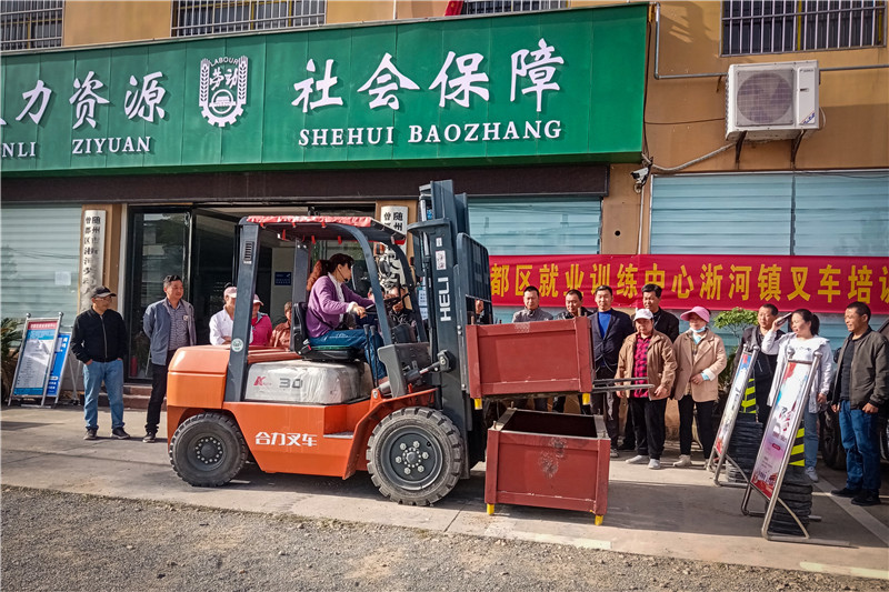 曾都区就业培训中心,淅河人社中心日前联合主办叉车技术培训班,免费为当地农民培训叉车技术,让农民有一技 之长,增加收入。(全媒记者孙洪涛、通讯员王涛摄)