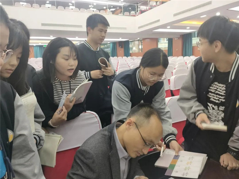 讲座虽然已经结束,但同学们的热情并未消退,他们兴致勃勃地继续向苏德超教授请教相关问题,苏德超教授也耐心一一解答,人群中时不时传来一阵阵欢声笑语,有的同学还为了纪念这次精彩的讲座请两位教授签名。同学们纷纷表示,原来哲学并非晦涩难懂、遥不可及,原来就在我们的学习、生活之中,也可以是妙趣横生的。同学们真正体会到了哲学的魅力,感受到了哲学“无用”之“大用”。