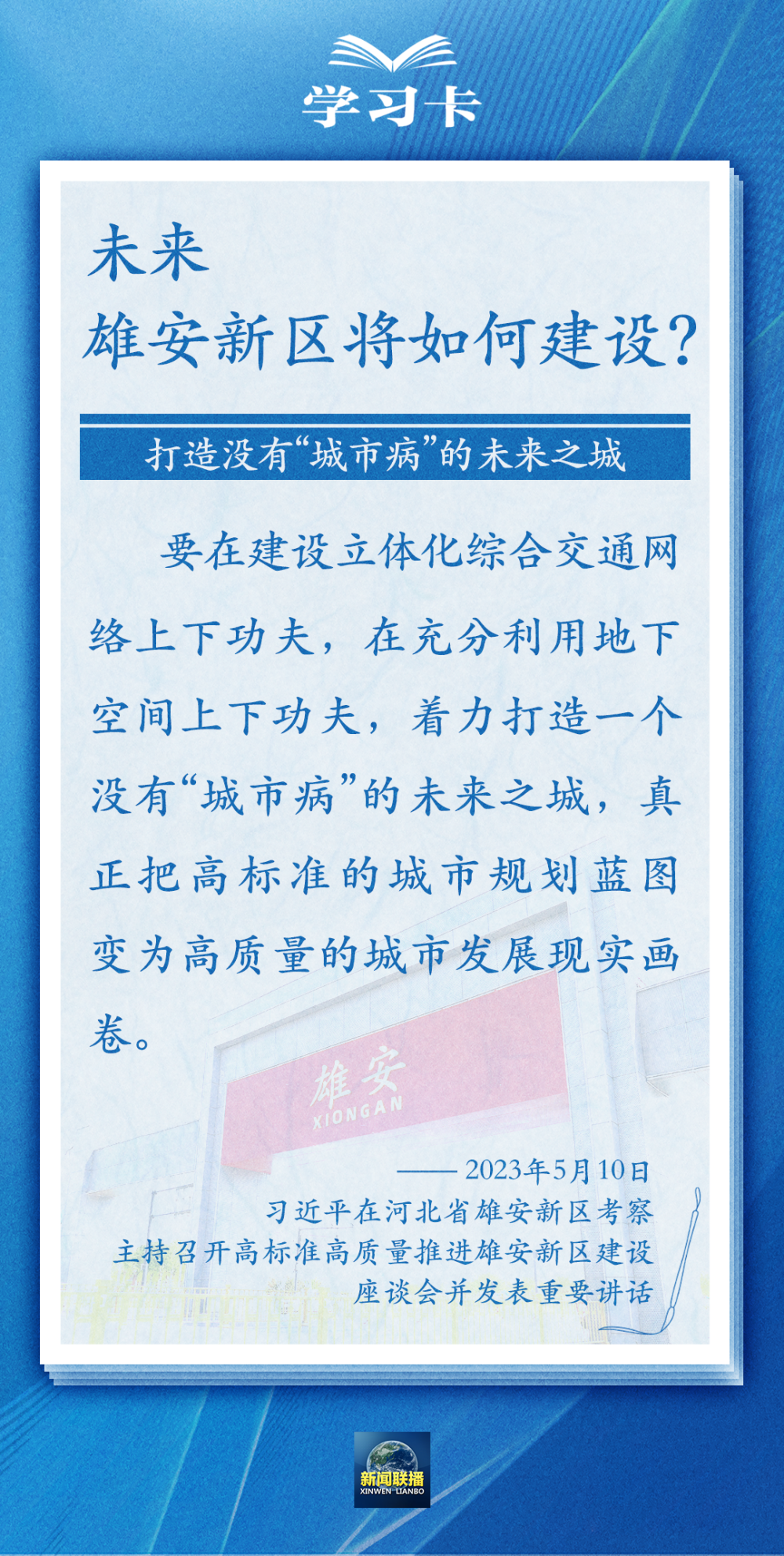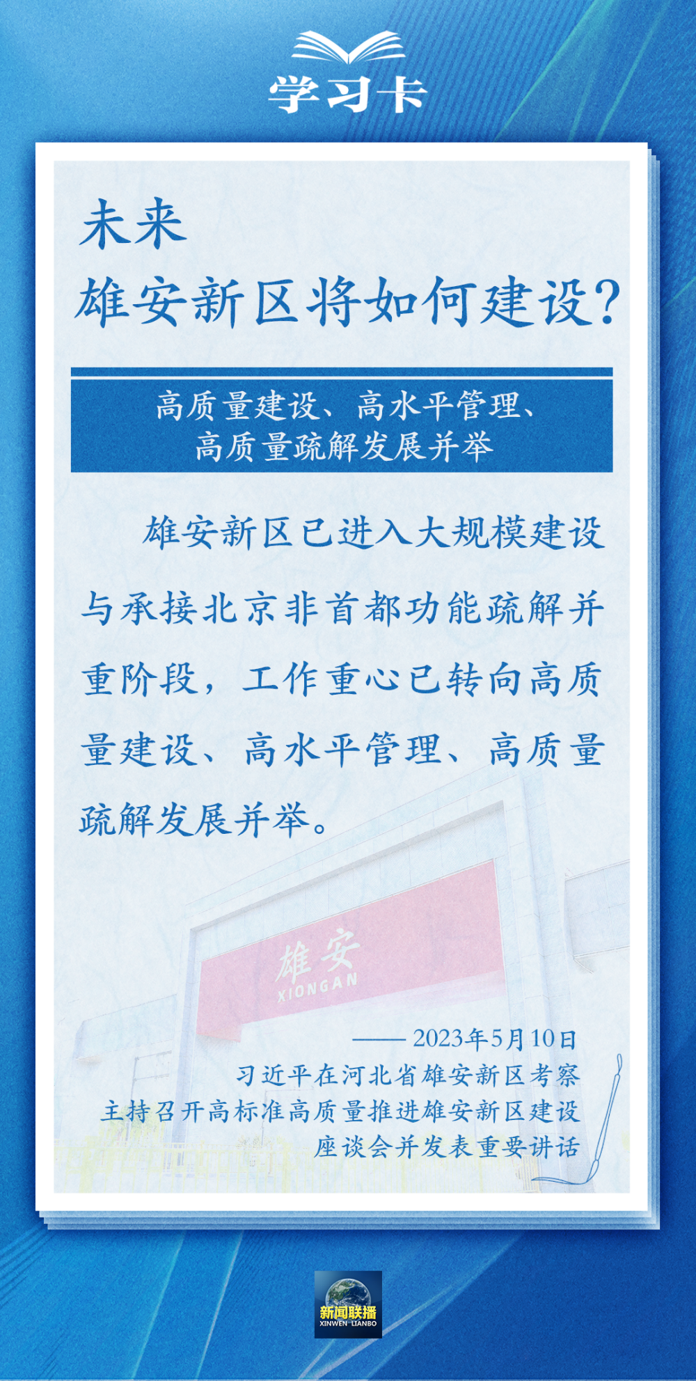 5月10日,习近平在河北省雄安新区考察,主持召开高标准高质量推进雄安新区建设座谈会并发表重要讲话。
