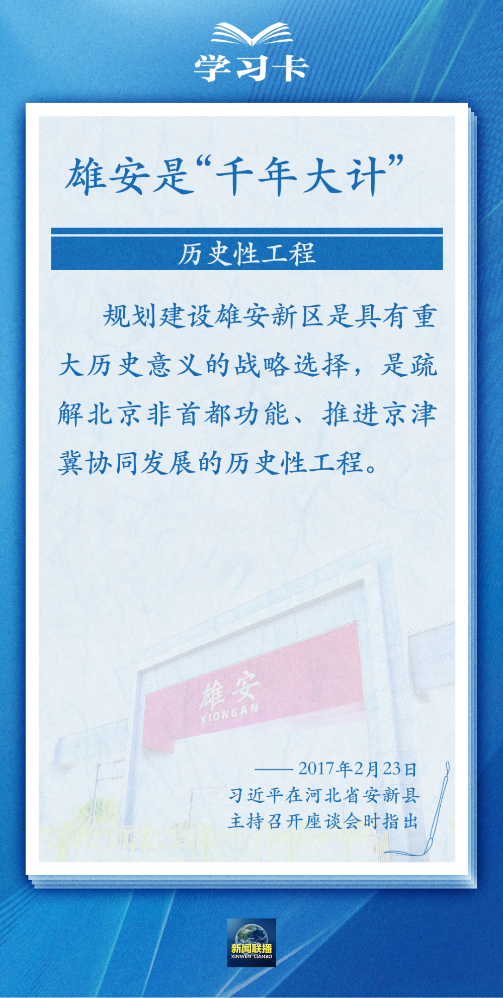 设立河北雄安新区,是以习近平同志为核心的党中央作出的一项重大的历史性战略选择,总书记高度关注雄安新区的规划建设,为何雄安是“千年大计”?未来如何推进高标准高质量建设?一起学习↓