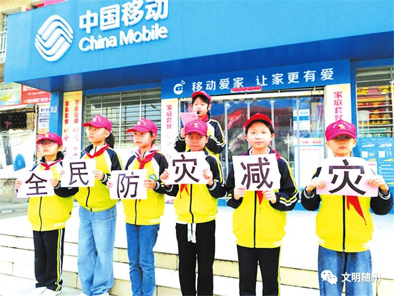 5月11日,随县澴潭镇第二小学学生化身“防灾减灾”宣传小使者,用稚嫩的身躯和嗓音进行防灾减灾宣传,这是该校在第15个“全国防灾减灾日”开展的系列活动之一,学校将“防灾减灾”宣传纵深拉伸,延至社区、街道、商区,引起民众的安全共鸣。(随州日报通讯员 王长军 孔庆杰摄)