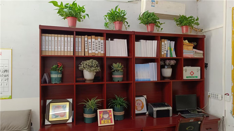 教学楼的一楼、二楼的教师办公室,用绿植映衬、书画装扮,以鲜花、书香增色。在温馨的方寸之地,将办公室装点的干净整洁又不失温馨雅致。各处室办公室更是别出心裁的展现了精致的美,每个细小之处无一不展现出老师们的审美新意。