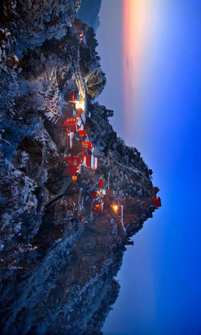 这种超常关切的结果,就是如今我们能看到的、“倾四海之财,竭万人之力”成就的武当建筑群。其规制之高、风貌之壮观富丽,在同时期的建筑物中,唯有北京故宫能与之媲美,即所谓“北故宫、南武当”。更有趣的是,那些建筑物,与奇绝的武当山山势相得益彰,山岩、宫观、松柏隐现于云雾之中,说起有如天宫仙境,实不虚言。