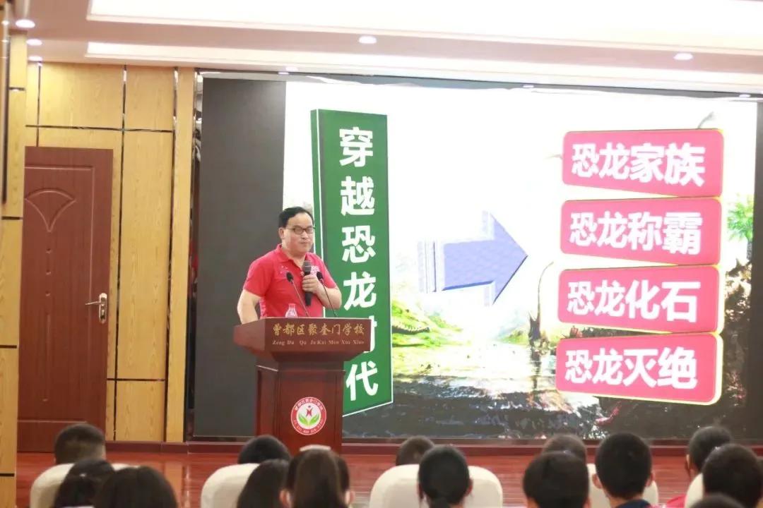 短短一个多小时的报告,徐教授幽默风趣的语言、深入浅出的讲解,赢得了孩子们的阵阵掌声。在活动中,徐教授和孩子积极互动,带领师生仿佛穿越到了恐龙时代,与恐龙同行,极大激发了孩子们的科普兴趣。
