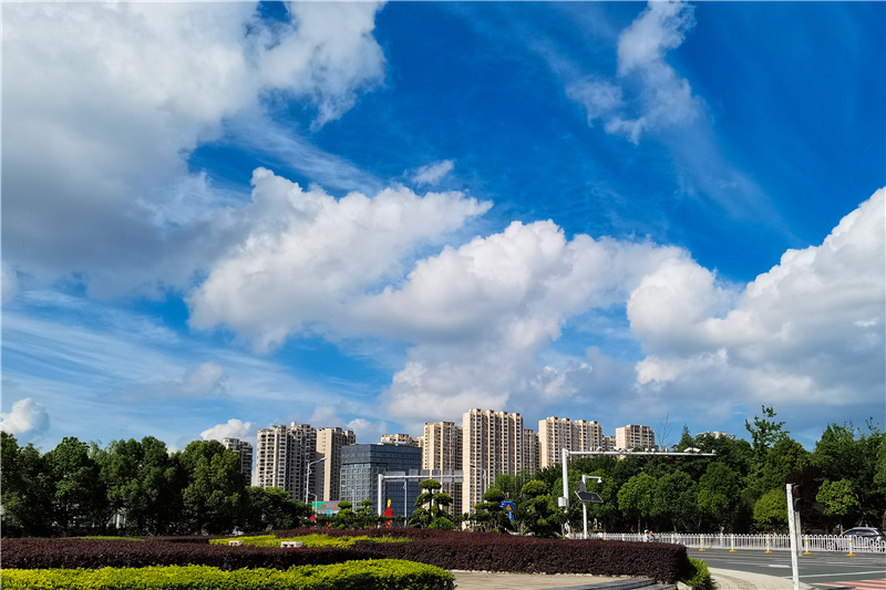 蓝天白云装扮随州城区