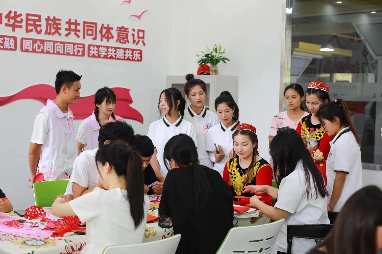 仪式结束后,随州职院各民族优秀学生代表,还与博州职业技术学院15名师生“一对一”结成对子。大家相互介绍认识,牵手走进随州职院“红石榴之家”活动中心,剪纸、下棋、手工制作……同学们互帮互助,笑语连连,现场气氛很快就热烈起来。领队的博尔塔拉职业技术学院党委委员、副校长王清峰非常感慨:“本次活动在两所学校之间搭建起了民族团结一家亲的桥梁和纽带。新疆各民族的青年大学生要进一步加强与湖北、与内地各大高校青年大学生的交往交流交融,让大家像石榴籽一样紧紧抱在一起,团结奋斗,实现各民族共同繁荣”。