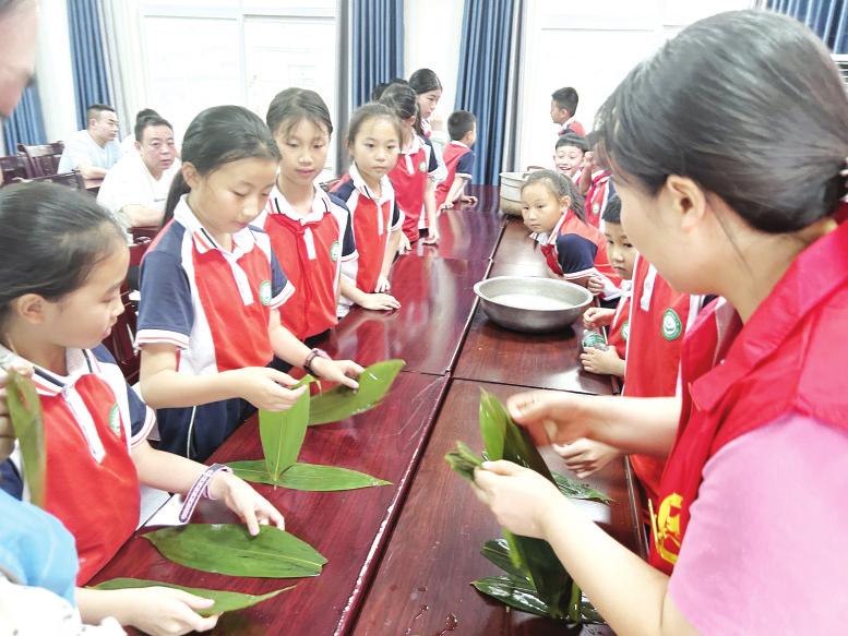 6月21日,曾都区南郊街道朱家湾社区新时代文明实践站组织志愿者、辖区小学生开展以“弘扬传统文化”为主题的“粽香飘社区”亲子活动。
