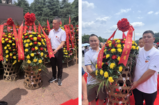 在毛泽东铜像广场上,两水沟社区全体党员举行了敬献花篮仪式,社区书记龚承斌同志代表全体党员向毛泽东同志铜像敬献花篮,全体党员向毛泽东同志铜像三鞠躬,并环铜像瞻仰一周。