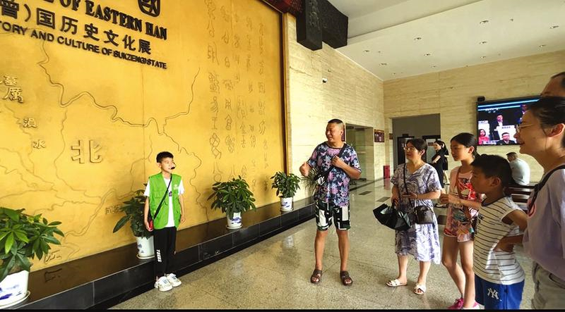“今天由我带领大家参观随州博物馆,各位来宾这边请。”7月22日,随州博物馆内,11岁的小小志愿讲解员单雨阳,认真地向游客讲解文物。据悉,随州博物馆“小小志愿讲解员”品牌社教活动已开展10余年,今年暑假期间,有15名小小志愿讲解员为到馆游客提供义务讲解,宣讲随州历史文化。 (随州日报见习记者 刘馨怡摄)