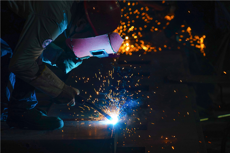 8月2日,程力专用汽车股份有限公司生产车间里焊花飞舞,工人们在高温下坚持生产,确保订单按时交付。(全媒记者 孙洪涛摄)