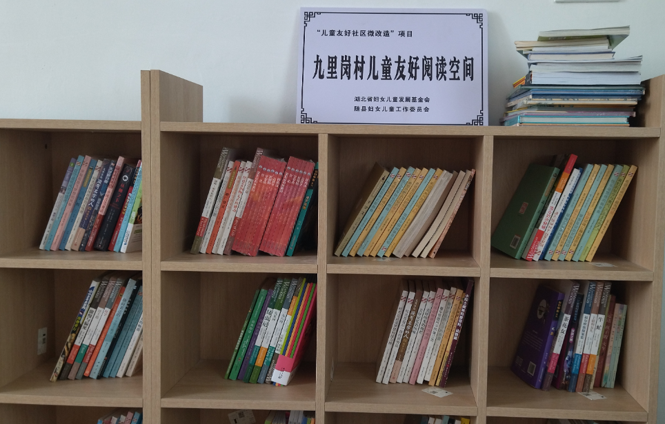 九里岗村儿童友好阅读空间位于澴潭镇九里岗村妇女儿童之家内,为更好的融入儿童友好理念,该村将原有闲置的老办公室进行了重新设计改造,以鲜艳的颜色和生动的图画,建成温馨舒适的儿童友好“悦享”空间。