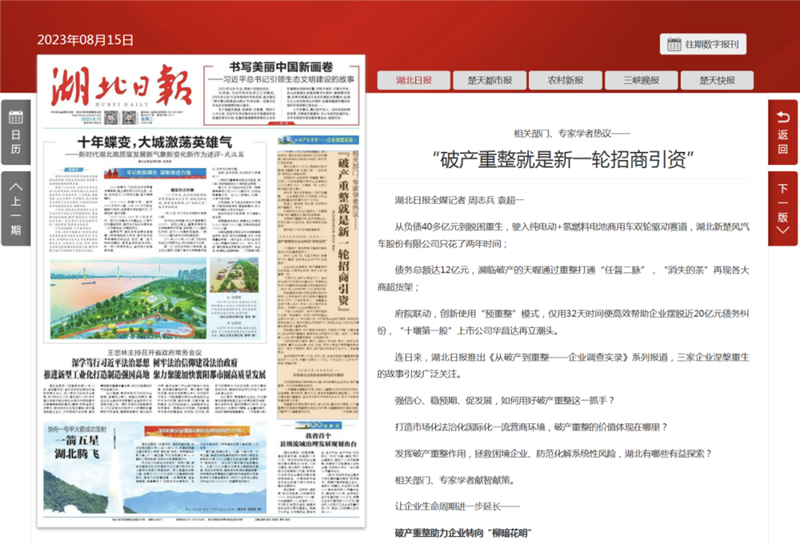 连日来,湖北日报推出《从破产到重整——企业调查实录》系列报道,三家企业涅槃重生的故事引发广泛关注。