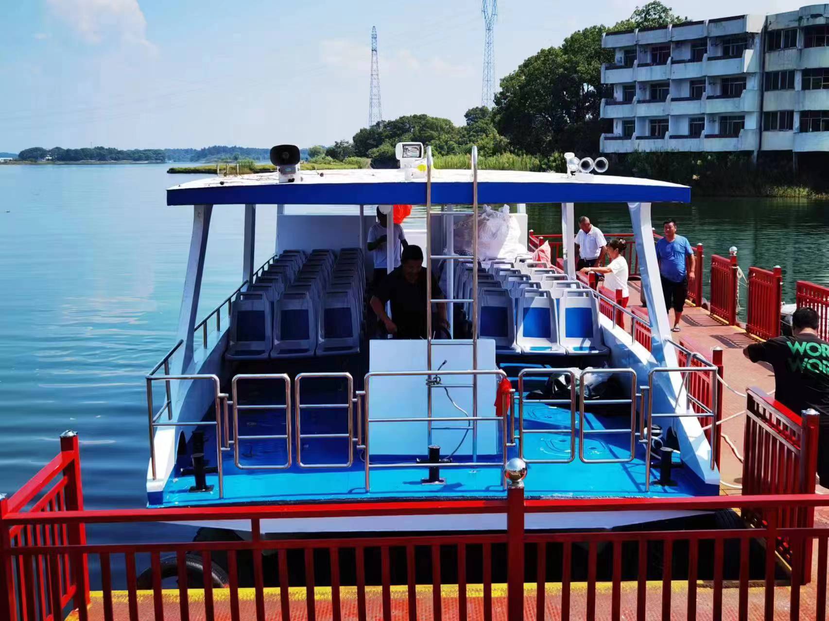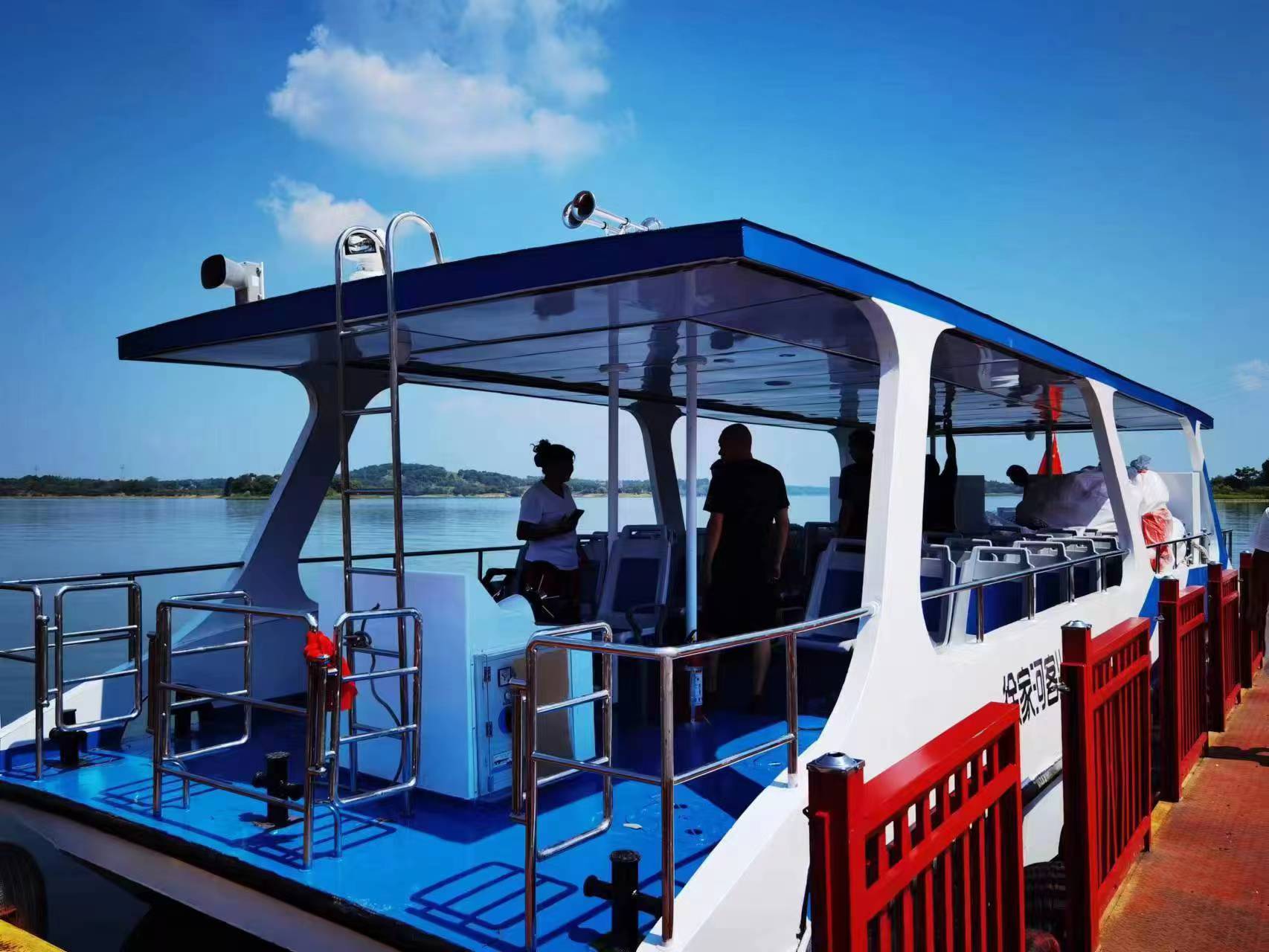 据了解,该船总长11.50m、型宽4.20m,总吨位30吨, 48客位,最大航速12km/h。该客船采用LPG动力驱动,相较常规动力船舶,该船舶能耗大幅降低,且航行时噪声小,更加平稳,乘客体验感增强,安全系数也得到提升。该船舶成功下水,标志着随州市在推进“美丽乡村渡口”共同缔造行动新能源客船试点项目上走在了全省前列。