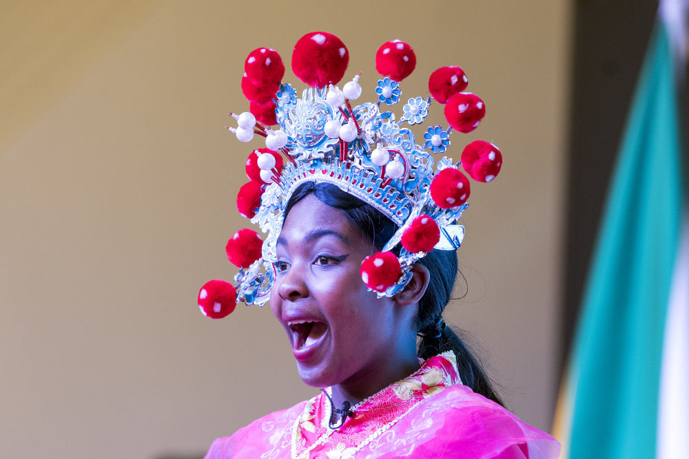 2019年8月5日,在南非比勒陀利亚,来自开普敦大学孔子学院的学生表演京剧《梨花颂》。中国与南非政府当天宣布,双方同意将每年9月17日定为南非中文日。