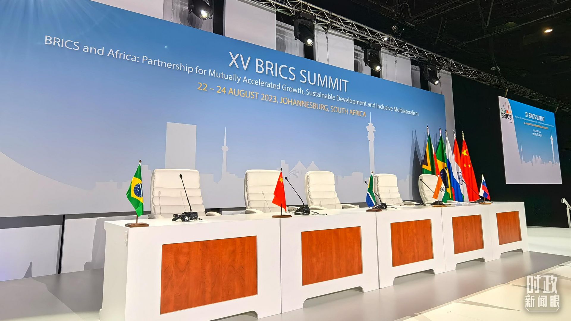 △金砖国家领导人第十五次会晤特别记者会会场。(总台央视记者韩锐拍摄)