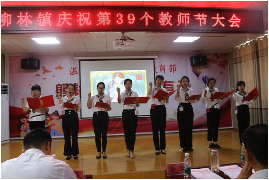 “从入学至今,我从一个懵懂无知的孩子,成为一个懂事知礼的少年。求学生活中的每一次进步,每一次喜悦,每一次成长,都离不开老师你们细心的教导和悉心的帮助......”优秀学生叶冰灵代表柳林学子表达对老师们的感恩与祝福,“请允许我再次代表柳林镇全体学子,对所有最敬爱的老师们,致以最衷心的感谢、最崇高的敬意和最真诚的祝福,祝您们——节日快乐!” “我志愿成为一名人民教师,忠诚党的教育事业……”中心学校常务副校长张萍带领全体与会教师进行宣誓,简短而庄严的仪式,洪亮且郑重的誓言,抒发的是不忘教书育人的初心,表达的是牢记立德树人的使命。