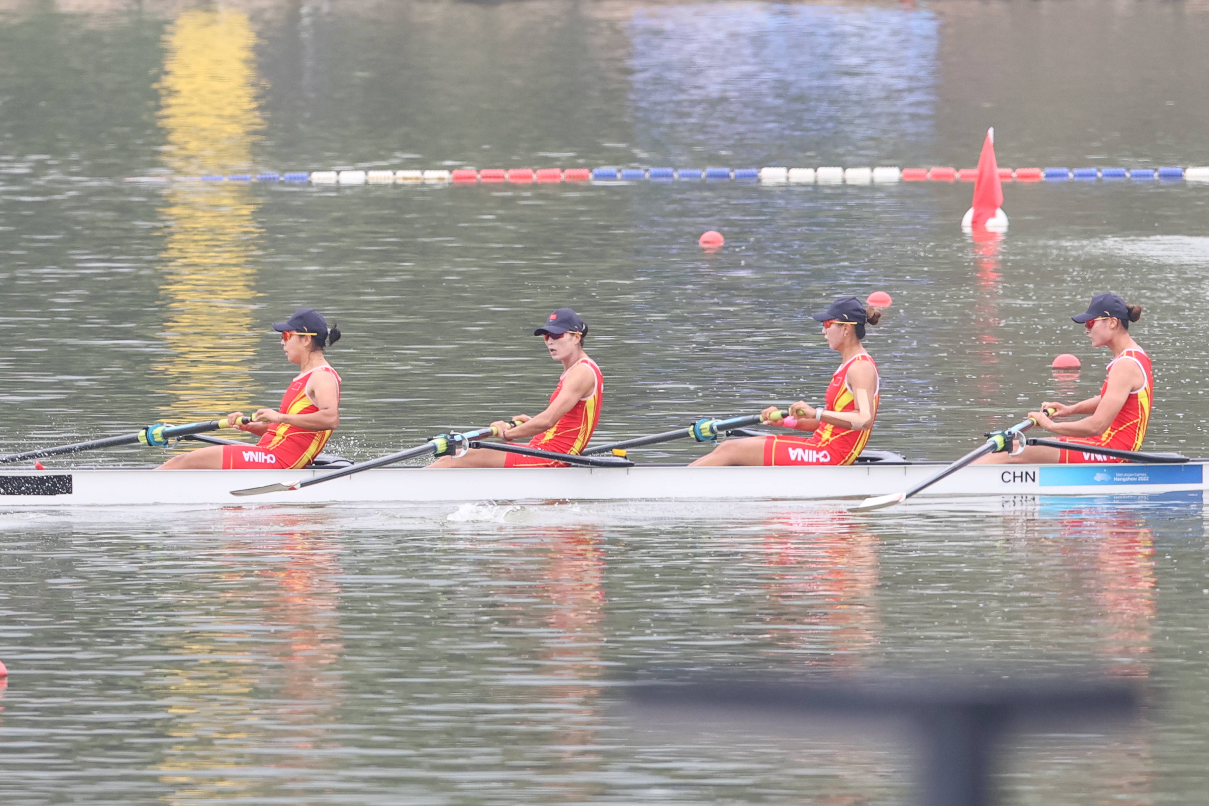 5分钟后,王子凤所在的女子四人单桨决赛打响,中国艇以6分42秒03夺冠。