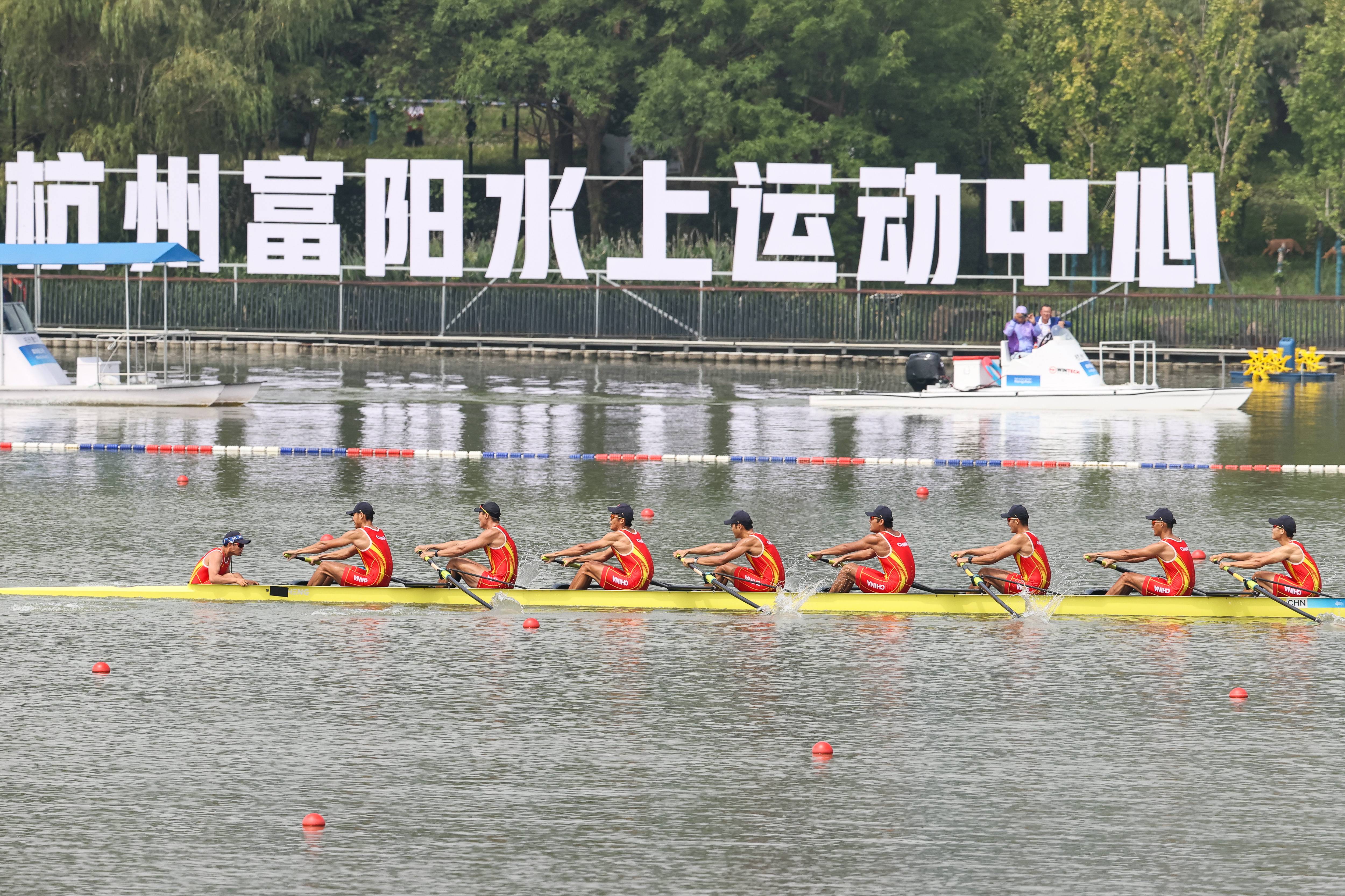 当日最后一场金牌收官战,李文雷所在的中国男子八人艇以5分40秒17成绩夺冠。