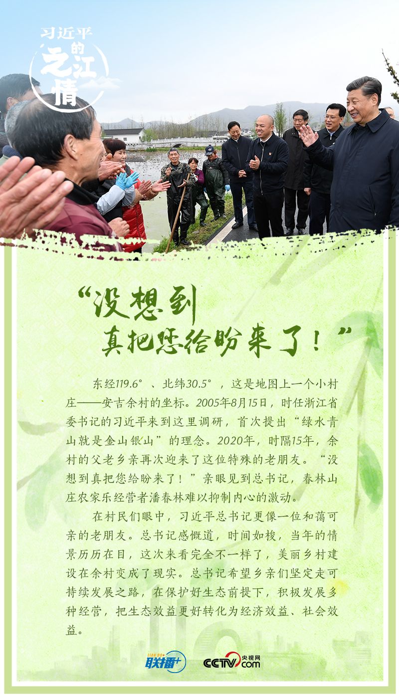 一步一履总关情。总书记曾在浙江工作6个年头,熟悉这里的山水草木、风土人情。他曾说:“这里秀美的山水,这里勤劳的人民,这里悠久的文化,给我留下了难以忘怀的印象。”