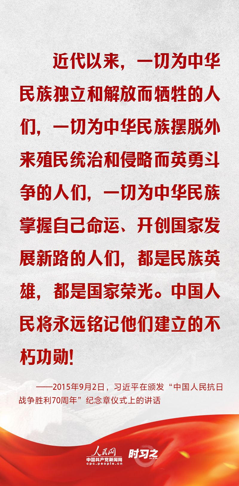 英雄是国家历史的重要体现,是民族精神的重要来源。习近平总书记曾在多个场合回顾英雄事迹,深情缅怀英烈。9月30日是烈士纪念日,让我们重温习近平的重要论述,让英烈精神成为激励我们前行的强大力量。
