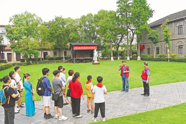 8月26日,武昌农民运动讲习所旧址纪念馆,游客聆听“红巷爷爷”的讲解。(湖北日报全媒记者 李溪 摄)