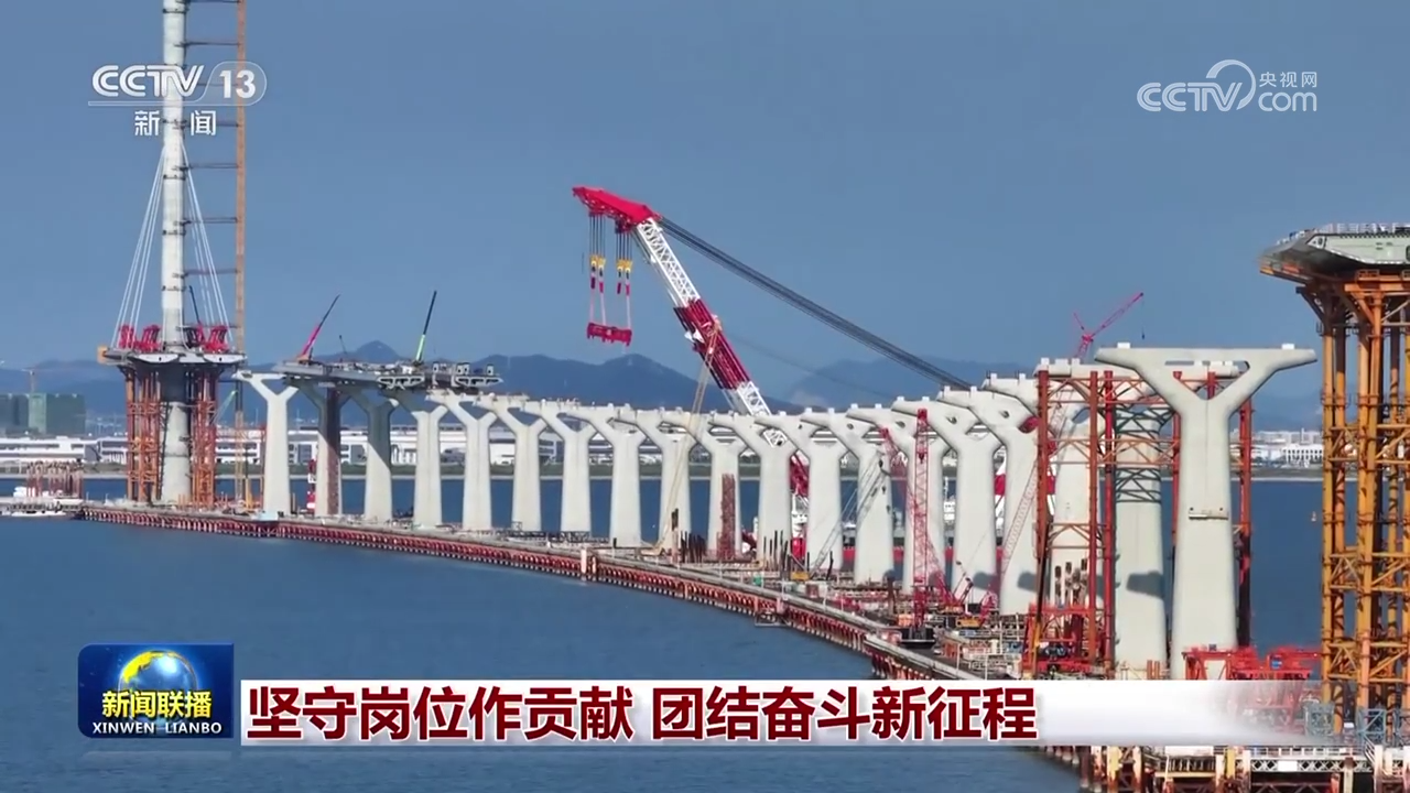 习近平总书记的重要讲话鼓舞激励全国广大劳动者。这个假期,大江南北很多重点工程建设现场忙碌不停。在粤港澳大湾区重点工程——黄茅海跨海通道建设现场,5000多名建设者加紧施工、连续作战,黄茅海跨海通道连接广东珠海和江门,计划2024年建成通车,这是继港珠澳大桥、深中通道后,粤港澳大湾区的第三条重要跨海通道。