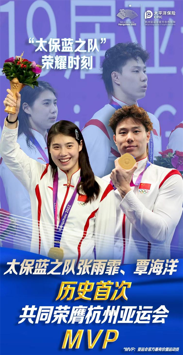 几乎在同一时间,中国奥林匹克委员会正式公布杭州第19届亚运会最具价值运动员(MVP)结果,中国游泳运动员张雨霏、覃海洋荣获本届亚运会“最具价值运动员”称号。
