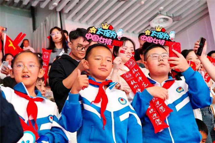 在本场亚运会女排决赛中,有几位特殊的小观众。10月6日,来自青海省海南州共和县第二寄宿制小学的学生们,在学校老师的带领下,一早便从青海西宁出发,乘坐飞机跨越2300多公里来到杭州。