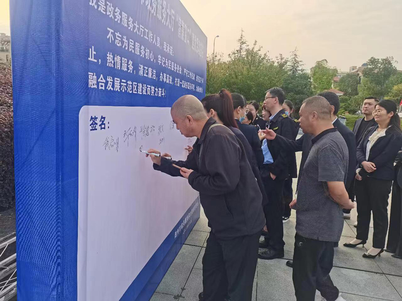 10月10日下午五点,市政数局召集市政务服务大厅各部门首席代表、窗口工作人员等70余人参加承诺签名活动,他们在承诺墙上郑重签名,表达了践行为民初心、牢记为民使命的决心。窗口首席代表表示,要树立优质高效的服务标杆,以方便、快捷、高效、廉洁的服务,全面提升企业、群众的满意度和幸福感,助力营商环境再优化。