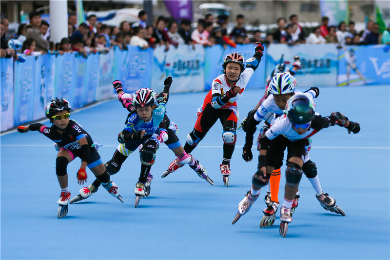 2023年湖北省速度轮滑公开赛10月22日在随州落幕,来自全省的200多名运动员参加了比赛。图为比赛现场。(全媒记者 孙洪涛摄)