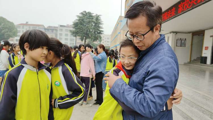 孝敬父母,懂得感恩,是中华民族的传统美德。百善孝为先,教育之根本。洪老师教育孩子们要尊敬长辈,他讲述了孩子们日常生活中与父母、爷爷奶奶之间的点点滴滴,父母们每天日复一日地送孩子们上下学;孩子生病,父母操碎了心;做饭洗碗,忙于各类家务;辅导作业,操心学习……但孩子们有时对父母稍不如意就恶语相加。洪老师顺势教育学生要感恩父母,对身边的父母大声说出“我爱你”,再拥抱自己的亲人,此时的孩子们已经觉得愧对父母,再已控制不住内心的情绪,场面一度失控,家长和孩子们都泣不成声,泪如泉涌。