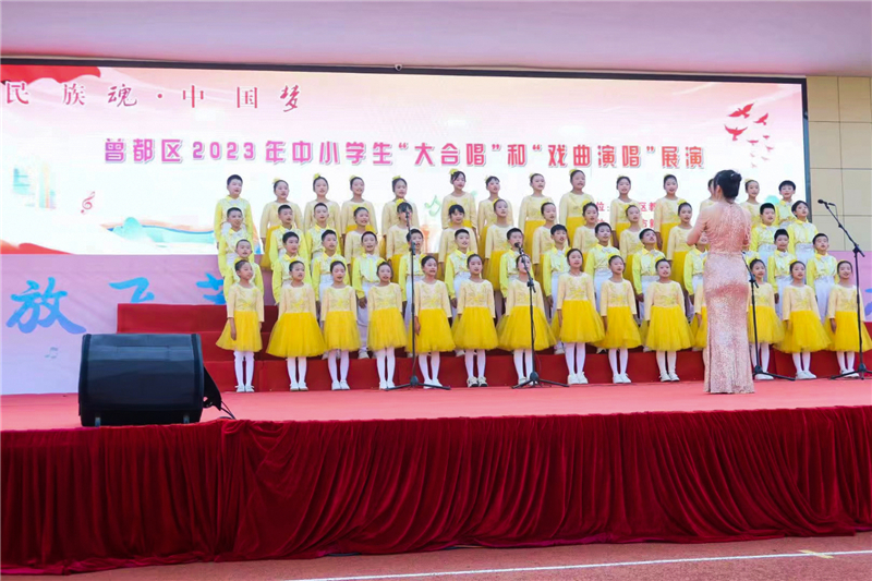 曾都区2023年中小学生“大合唱”和“戏曲演唱”展演日前在文峰学校举行。该展演以民族魂中国梦为主题,展示了我市中小学生良好的精神风貌。(全媒记者孙洪涛 通讯员沈俊俊摄)