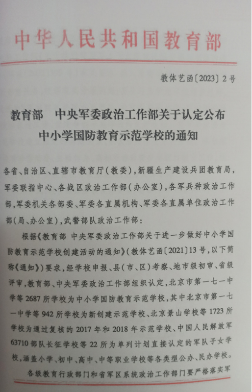 随县万福店农场中心学校荣获“全国国防教育示范学校”称号