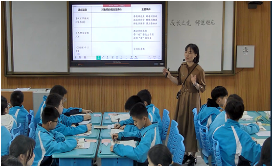 吴山镇秦婷婷老师从七年级上册第三单元整合教学《成长之光,师恩难忘》入手,富有成效的兼容了《从百草园到三味书屋》、《再塑生命的人》、《〈论语〉十二章》、《朝花夕拾》等内容。秦老师依托新课程标准,以核心素养为导向,以实际学情定目标,采用大单元整合教学。新颖地创设不同情境的任务清单,为学生搭建学习知识的框架;小组内学生分工合作,认真探讨、思考、赏析课文,多维度启迪学生,充分体现了“教-学-评”一体化的原则。